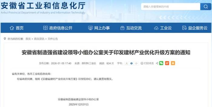 信息来源:《安徽省建材产业优化升级方案》